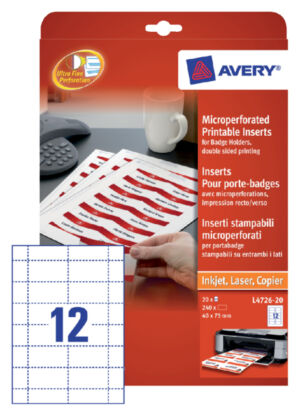 • NAAMBADGE ETIKET AVERY L4784-20 63.5X29.6MM 540STNAAMBADGE ETIKET AVERY L4784-20 63.5X29.6MM 540ST