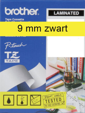 • Labeltape Brother Ptouch TZe325 9mm zwart